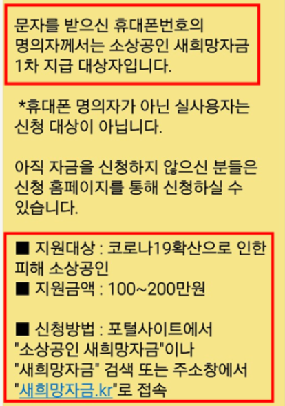 소상공인 2차 재난지원금 새희망자금 대상자는 아래와 같은 문자를 받으셨을겁니다.