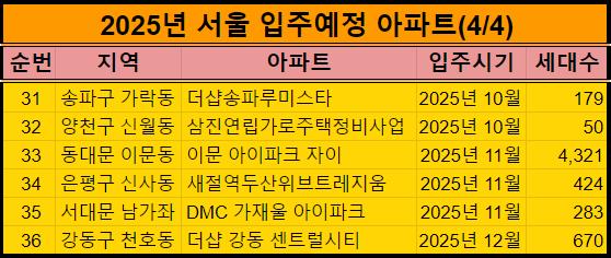추가적으로 2025년 서울 입주예정 아파트도 하는김에 같이 알려드렸습니다.