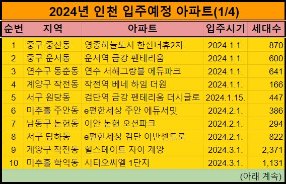 2024년 인천 입주 아파트 41곳을 표로 정리했습니다.