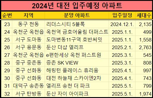 추가적으로 2024년 청주, 대전광역시 입주예정 아파트도 같이 올려드렸습니다.