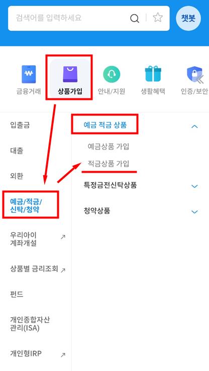 세번째. 예금적금상품에서 보시면 '적금상품 가입'이 보입니다.