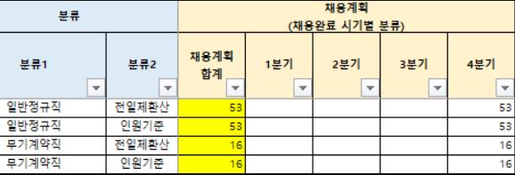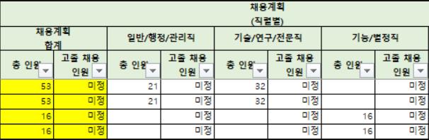 1. 정규직 채용 : 53명.