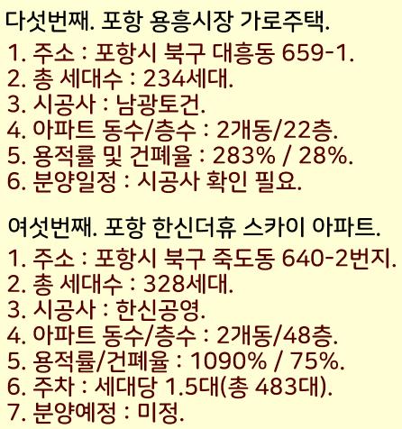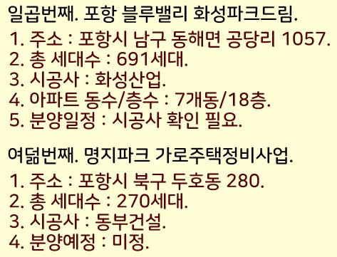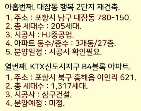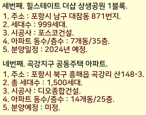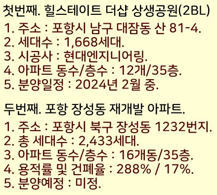 2024년 포항 분양예정 아파트들을 정리했습니다.