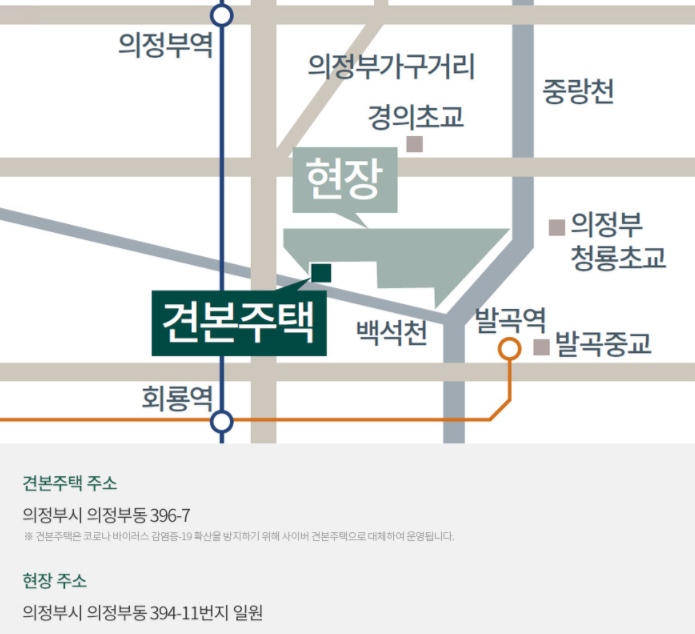 2. 견본주택 모델하우스를 방문하고 싶은분들은 의정부시 의정부동 396-7 주소를 네이게이션에 입력하시면 됩니다. 사전에 전화를 방문일정 및 오픈여부를 확인하시기 출발하시기를 추천드립니다.