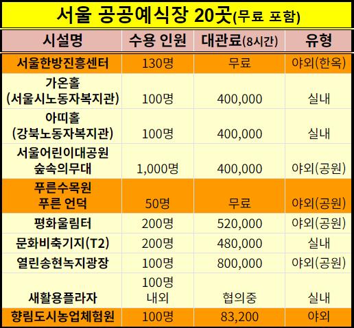 서울시에서 지원하는 공공예식장은 무료입니다.
