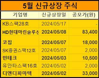 이렇게 24년 5월에 신규 상장하는 주식들을 정리해서 알려드렸습니다.