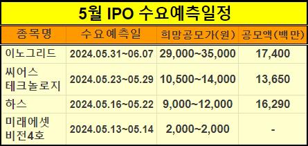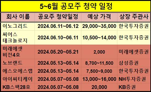 5월 IPO 일정을 참고하셔서 공모주 지원을 잘 준비하시기 바랍니다.