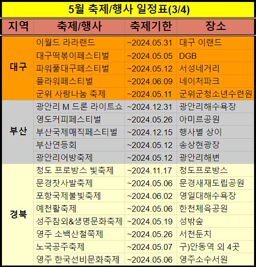 2024년 5월 축제 및 행사 일정을 정리했습니다.