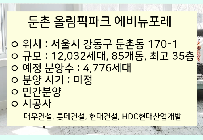 둔촌 올림픽파크 에비뉴포레에 대해서 간략하게 정리해보도록 하겠습니다.
