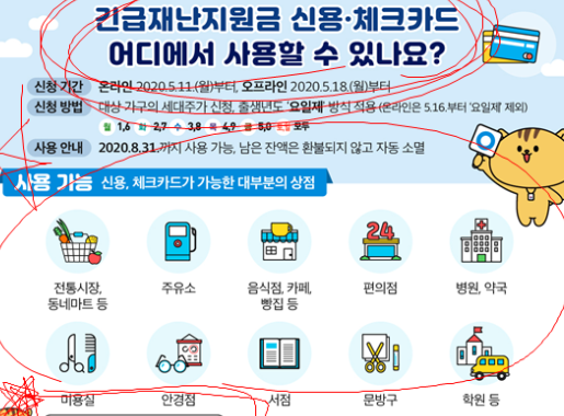 그리고 제일 많이 긴급재난 지원금 사용처에 대해서 많이 헷갈려 하시는데 이런 부분은 추후 국민들이 긴급재난 지원금 사용을 편리하게 할 수 있도록 카드사 홈페이지와 지자체 홈페이지를 통해서 긴급재난 지원금 사용처를 계속해서 알려 준다고 합니다.