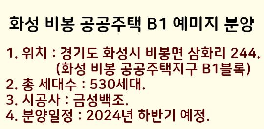 화성 공공주택지구 B1블록 분양계획을 정리했습니다.