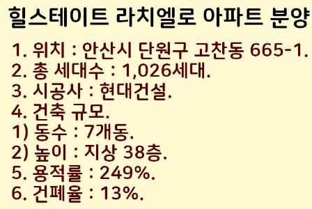 이렇게 안산 힐스테이트 라치엘로 아파트 분양정보를 정리했는데요.