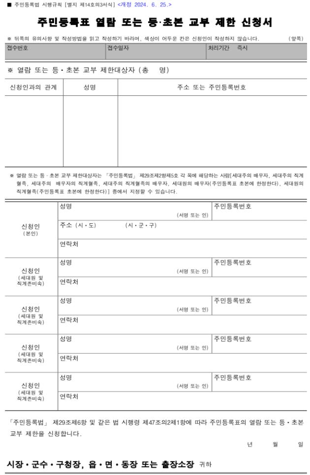 주민등록등본 열람 제한에서 가장 중요한것이 구비서류인데요.