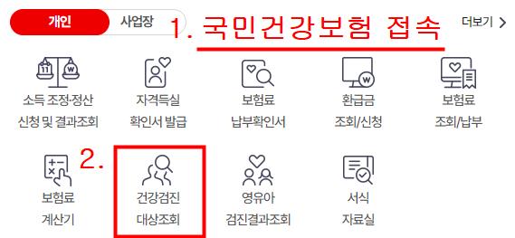 1. 국민건강보험에 들어가시면 '건강검진 대상조회'가 있습니다.