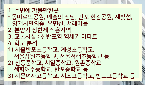1. 분양 위치 : 서울시 서초구 반포동 12번지 일대
