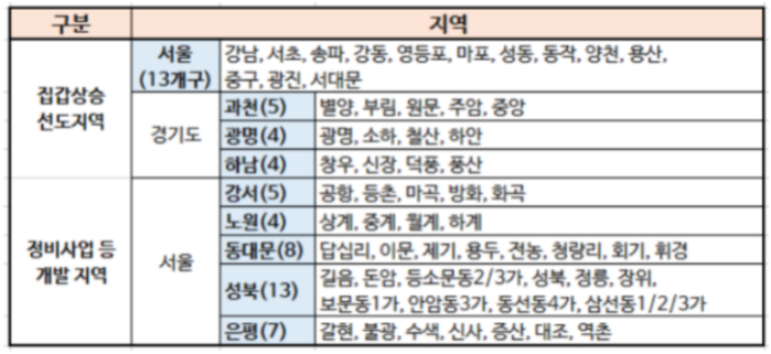 분양가 상한제 적용은 공공택지의 경우, 의무적으로 시행입니다. 그렇다면 민간택지내에 분양가 상한제가 적용되는 지역에 대해서 아래표로 보기좋게 정리해놨으니 참조하시기 바라며, 분양가