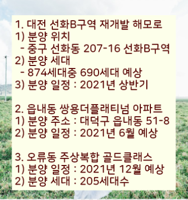 2021 대전 아파트 분양예정 리스트를 총정리하였습니다.