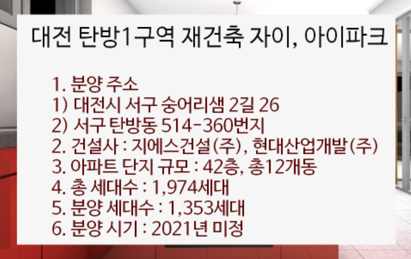 1. 대전 탄방1구역 숭엉리샘 재건축아파트