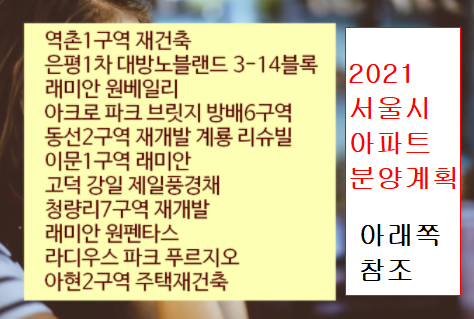 2021년에 분양하는 서울 아파트 분양계획 및 일정을 정리하였습니다.