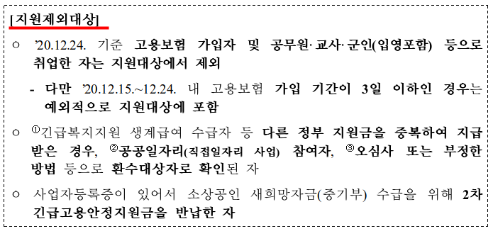 하지만 긴급 고용안정지원금 신청대상이 아닌분들은 아래 지원제외대상표를 올려드렸으니 참조하세요.