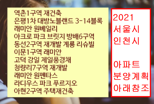 또한 2021년 서울시 인천시 아파트 분양계획을 알려드렸습니다.