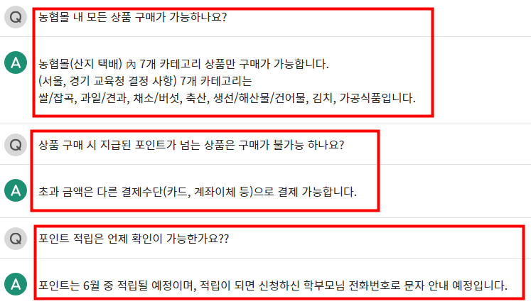 식재료 꾸러미 중 농협몰 포인트는 6.8.월요일부터 지급.