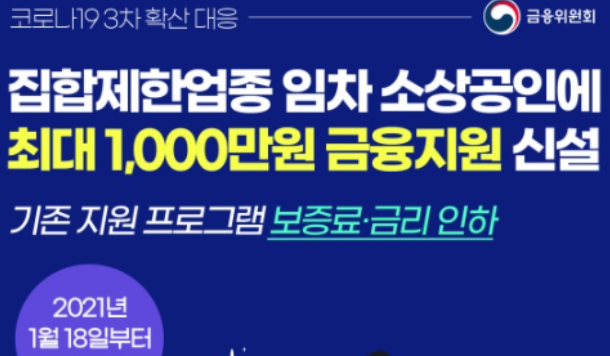 마지막으로 이 글을 보시는 집합제한업종의 임차 소상공인분들을 지원하는 최대 1,000만원 금융지원금을 알려드리겠습니다.