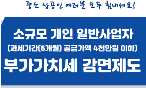 매출이 많지않은 개인사업자에게만 주어지는 혜택이니 꼭 혜택받으셨으면 좋겠습니다.
