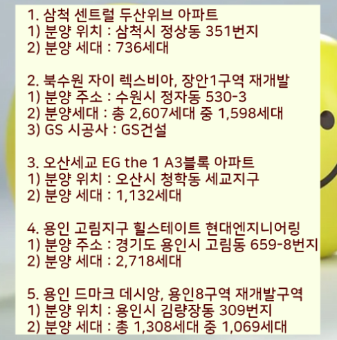 마지막으로 2021년 서울과 경기도에서 분양예정인 아파트들을 살펴보겠습니다.