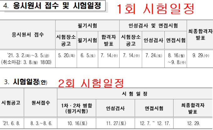 1. 1회 시험일정 2021.3.2.~3.5. 원서접수 / 3,246명 채용 계획
