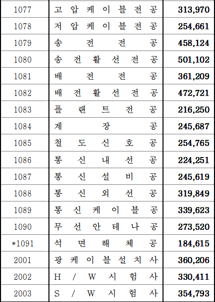 송전활선전공의 경우도 501,102원입니다.