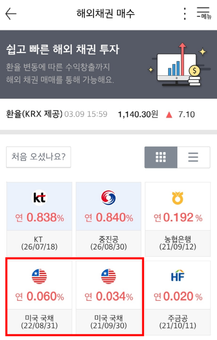 하지만 미국 국채의 경우에는 판매하는 금융사나 증권사가 별로 없습니다.