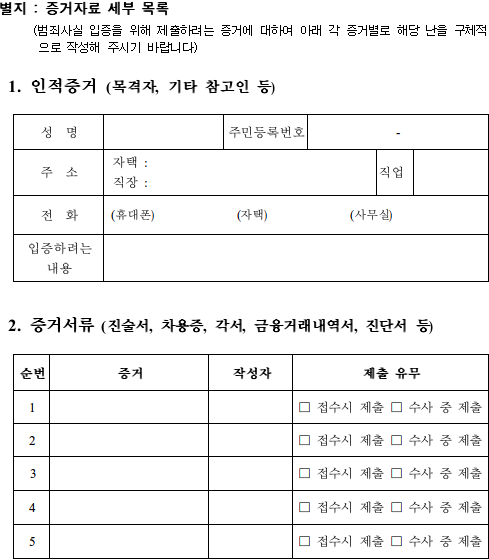 1. 인적증거 자료 : 기타 참고인, 목격자 등