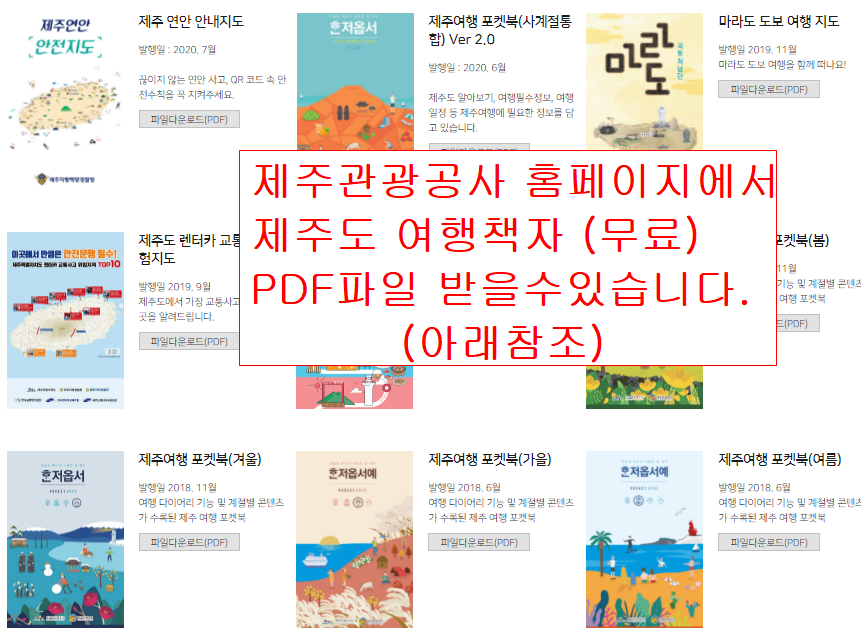 제주관광공사 홈페이지에서 여행시 필요한 다양한 책자를 제공하고 있습니다.