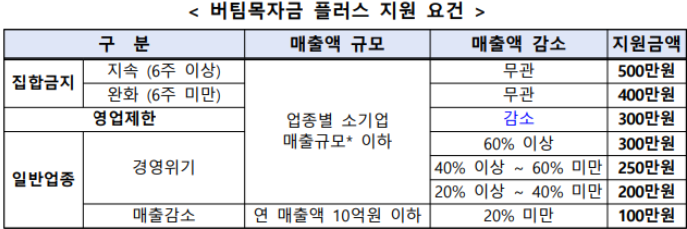 1. 소기업을 초과하는 집합금지, 영업제한, 일반업종은 지원이 안됩니다.