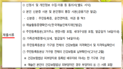 1. 핵심사항 2가지 : 120% 이하 소득자 / 예술활동증명 확인서 발급자