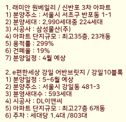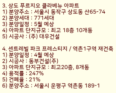 이렇게 5월에 서울 분양예정 아파트들을 정리하였습니다.