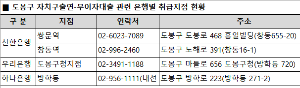 각 자치구별로 무이자 융지 지원금 신청접수