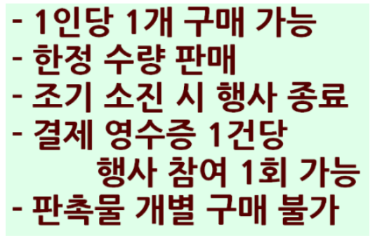 세번째. 결제 영수증 1건당 행사 참여 1회가 가능합니다.