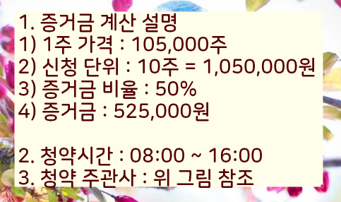 1주 공모주 확정 공모가가 105,000원이지만 10주 단위로 신청해야합니다.