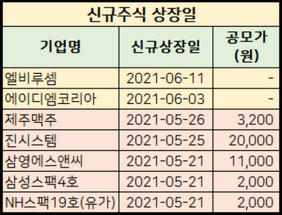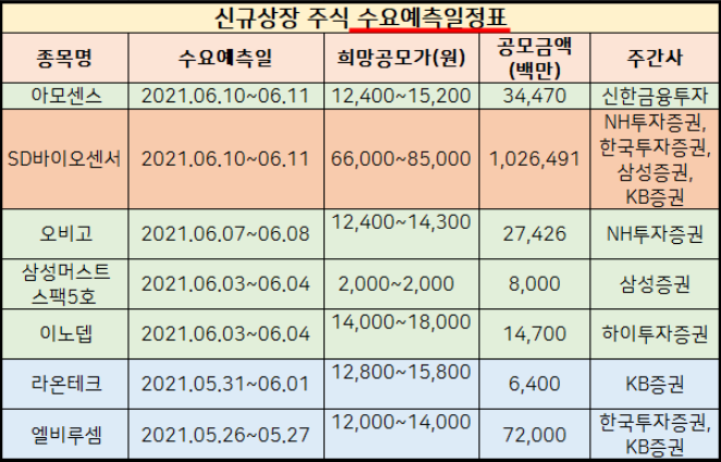 2021년 6월 공모주 청약일정을 정리해봤습니다.