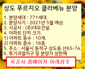 이렇게 서울시 동작구 상도동에 위차한 상도 푸르지오 클라베뉴 아파트분양을 알아봤습니다.