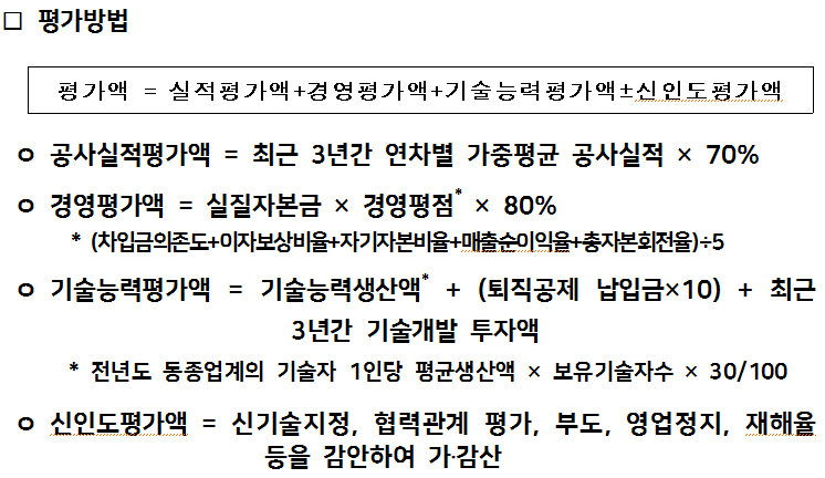 자세한 공사실적평가액, 경영평가액, 기술능력평가액,