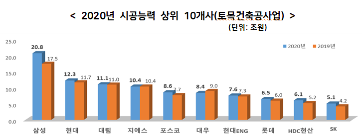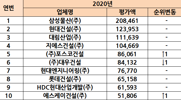 2020 시공능력평가 건설사별 순위를