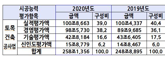 2020 시공능력평가 순위를 평가한 방법은