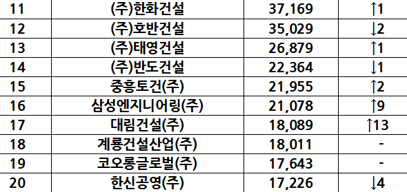 2020 시공능력평가 건설사별로 순위에서 보시다싶이