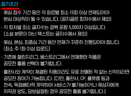 최소 15화 이상을 연재해야하는점이 이번 웹소설 공모전에서 체력을 요할듯합니다.