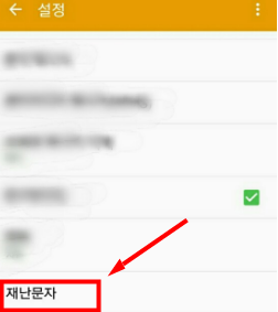 설정칸에서 "재난문자"라고 적힌 부분을 클릭합니다.