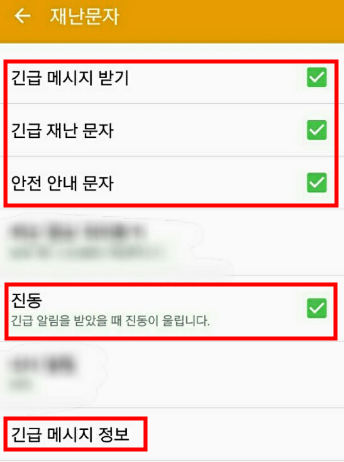 2. 긴급 재난문자에 체크도 푸는건 긴급 재난문자