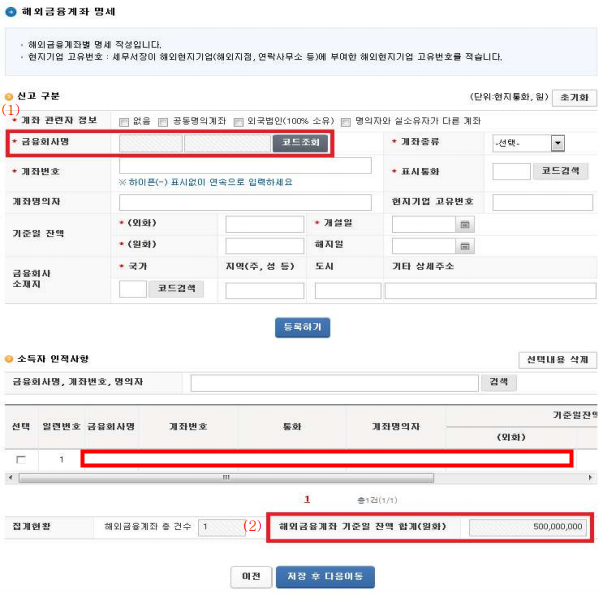 두번쨰. 해외금융계좌 명세서 작성하기.